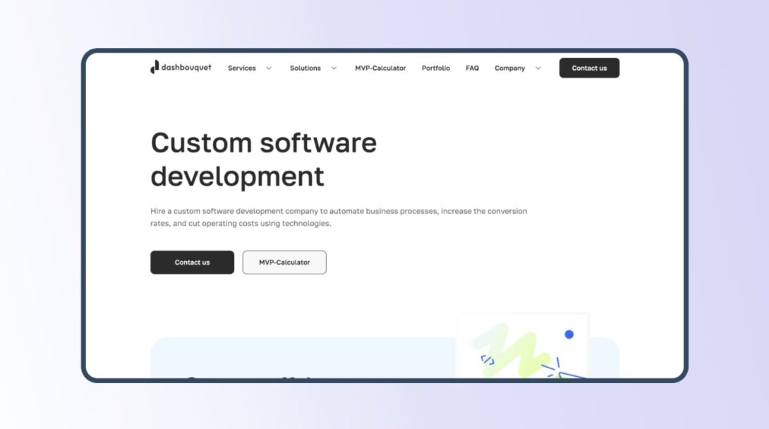The company’s core services include custom web and mobile application development, UX/UI design, and full-cycle product delivery. Dashbouquet has earned a strong reputation on Clutch, holding a 4.9/5 rating across 30+ client reviews, with feedback often praising the team’s ability to translate complex requirements into scalable, high-performing products.